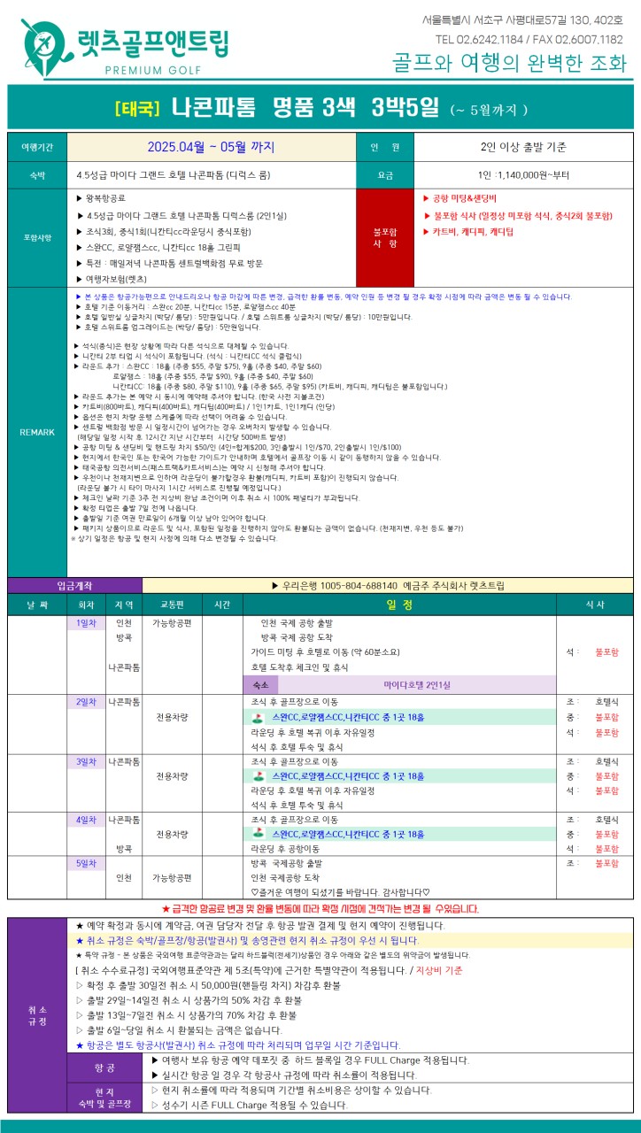 ⛳ 니칸티 3색 품격 골프 4~5월(0+18+18+18+0)