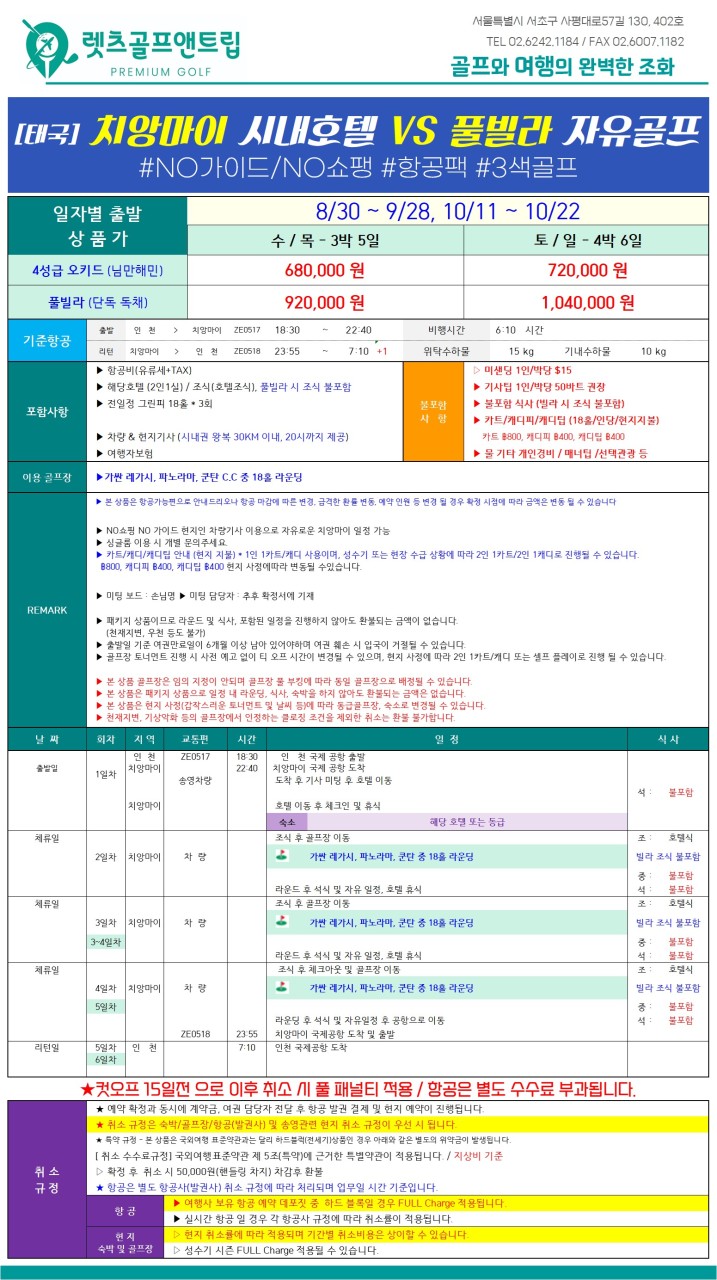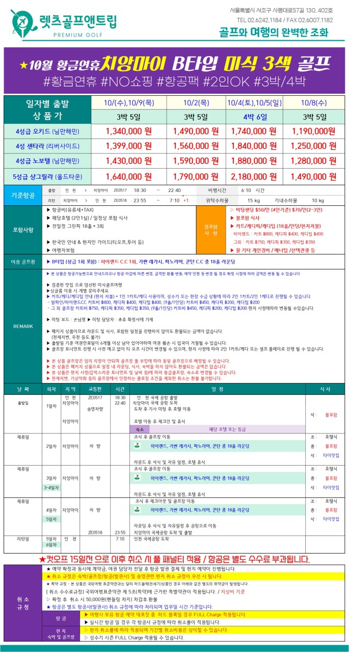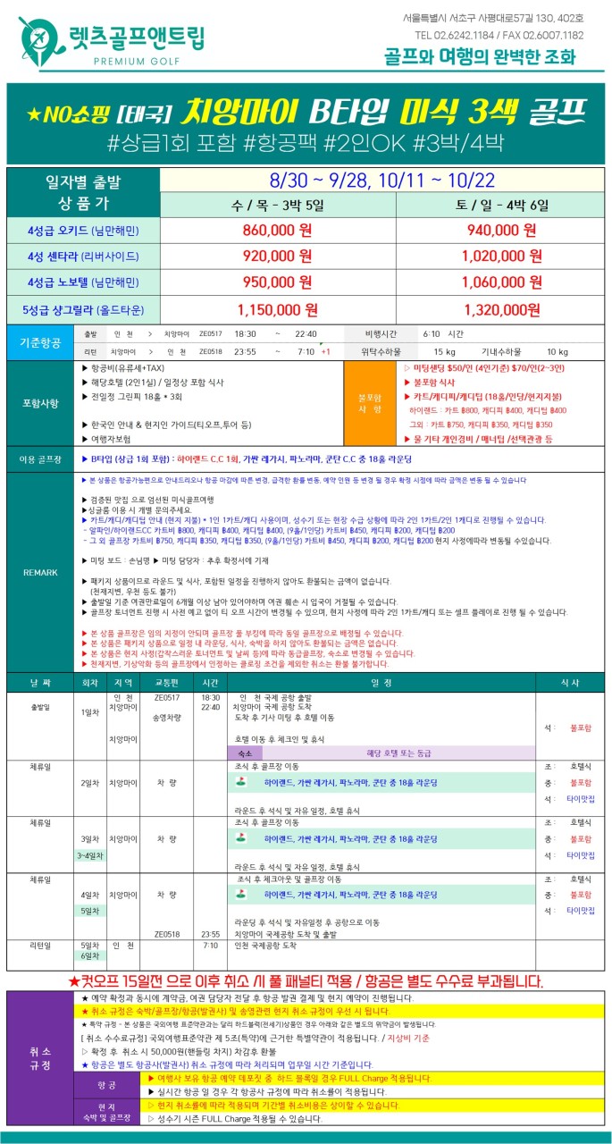 📢 9 ~ 10월 가을! 태고마비! 태국 치앙마이에서 즐기는 품격 있는 미식 골프여행