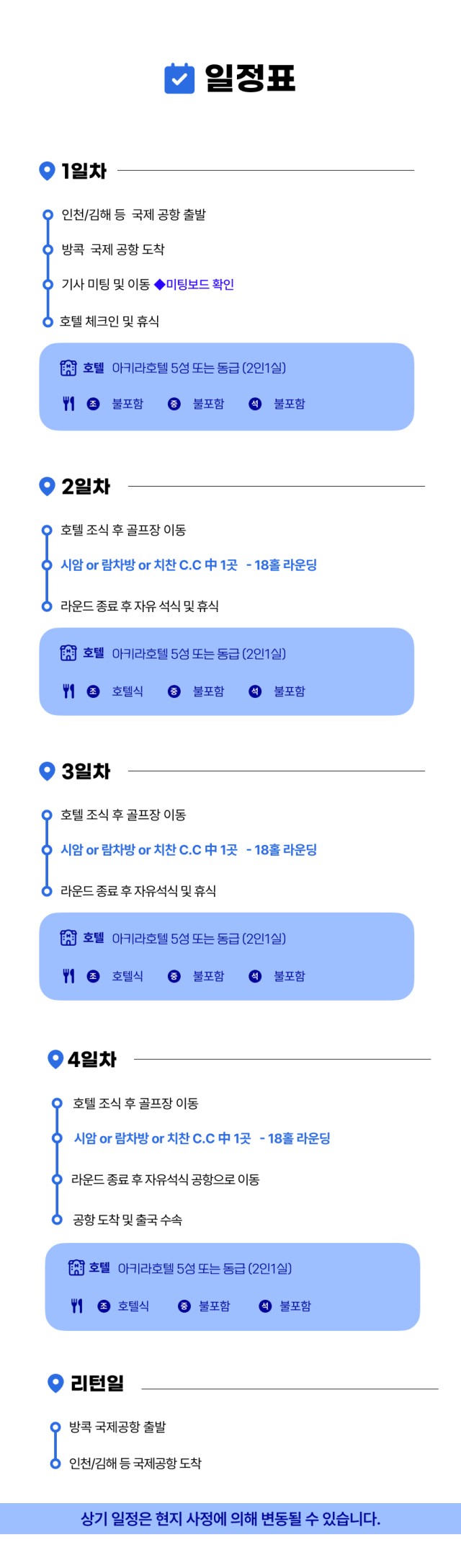 - 2인·3인 출발 시 : 20,000원 / 박 / 인 추가