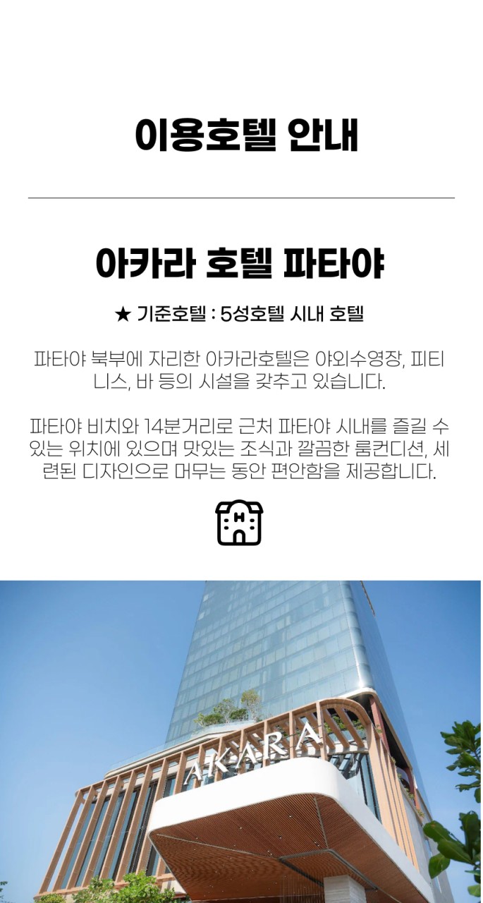 💰 호텔은 시내 5성급 ‘아카라호텔’에서 편안하게!