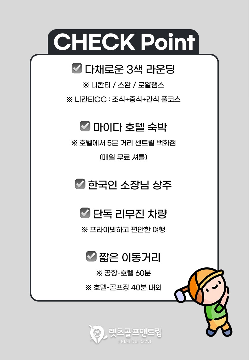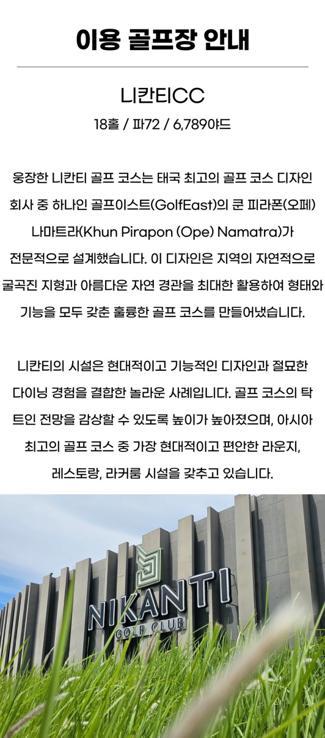 ▶ 11~3월까지 성수기 기간 2인 출발시 니칸티cc는 1부티업으로 배정됩니다