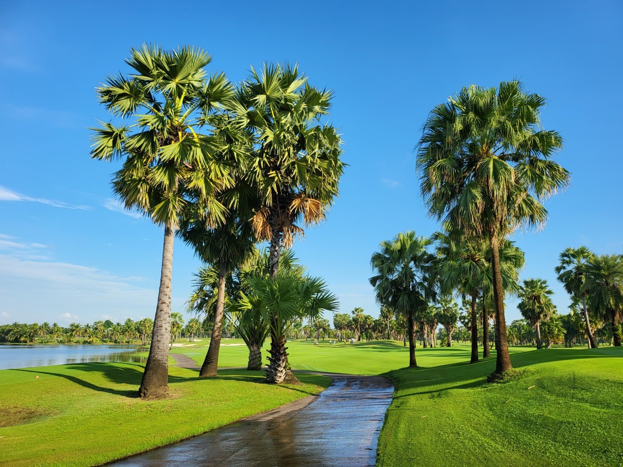 스완cc는 18홀 전체에 워터해저드가 있고 야자수가 많이 있어서 뷰가 정말 이국적이고 예쁜 골프장이랍니다~ 페어웨이도 적당하고 언쥴레이션이 많지 않은데도 은근~히 난이도가 있는 코스랍니다.