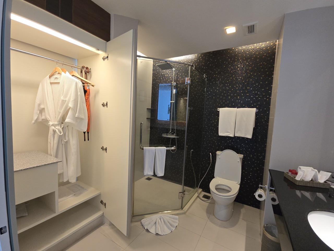 락커에는 샤워가운, 수건, 어메니티까지 잘 준비 되어 있어요~