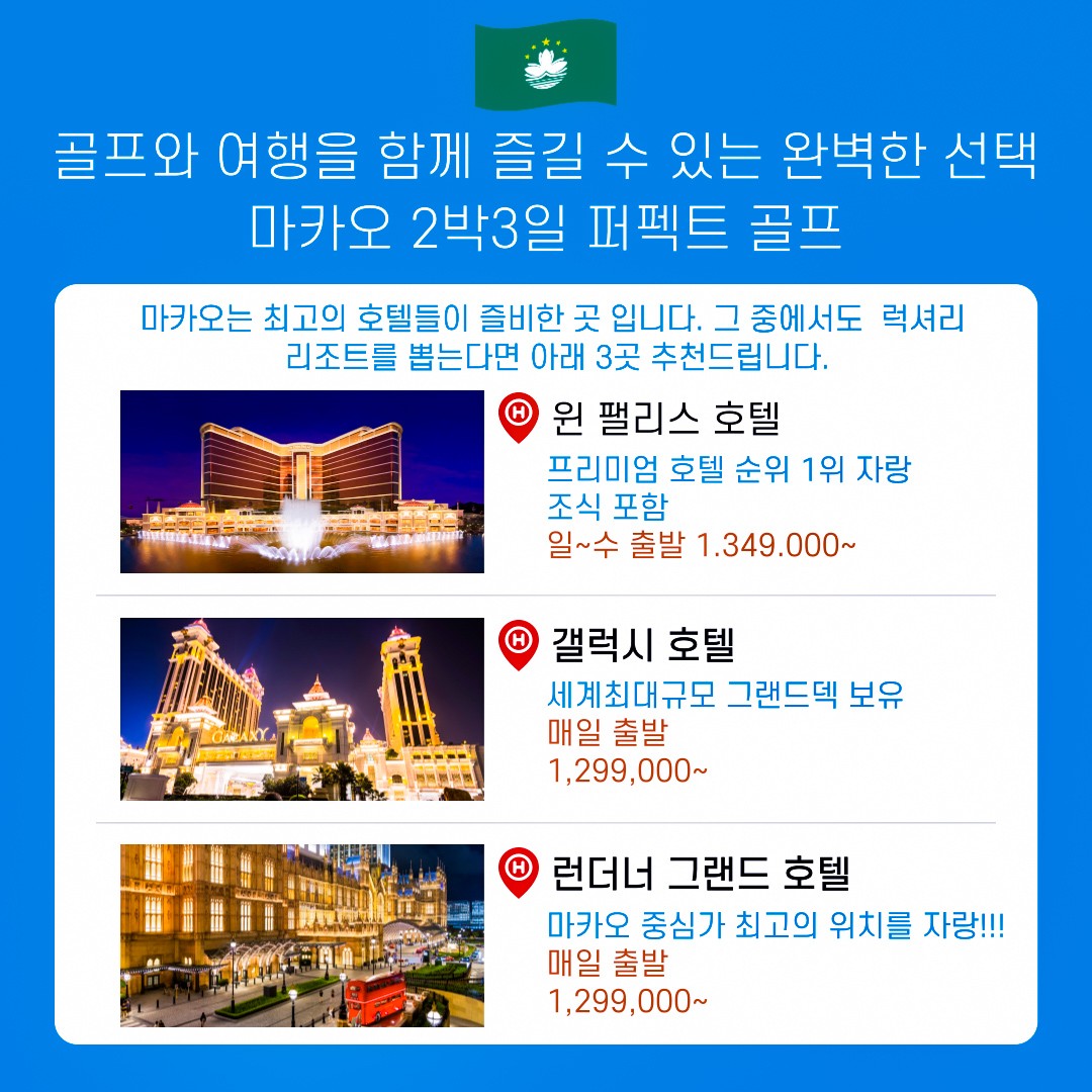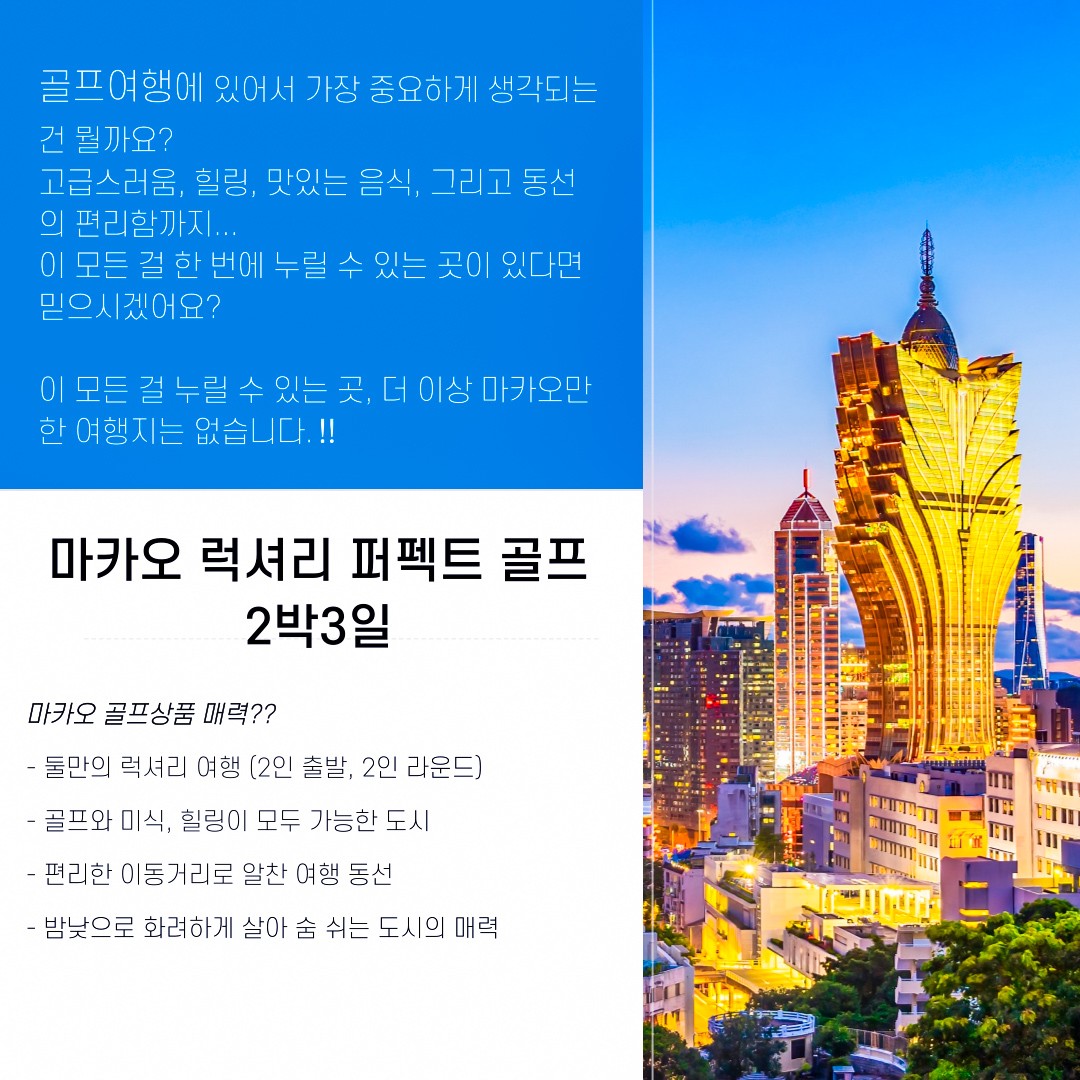 🇲🇴골프와 여행을 함께 즐길수 있는 완벽한 선택 ✨ 마카오 2박3일 퍼펙트 골프 ✨
