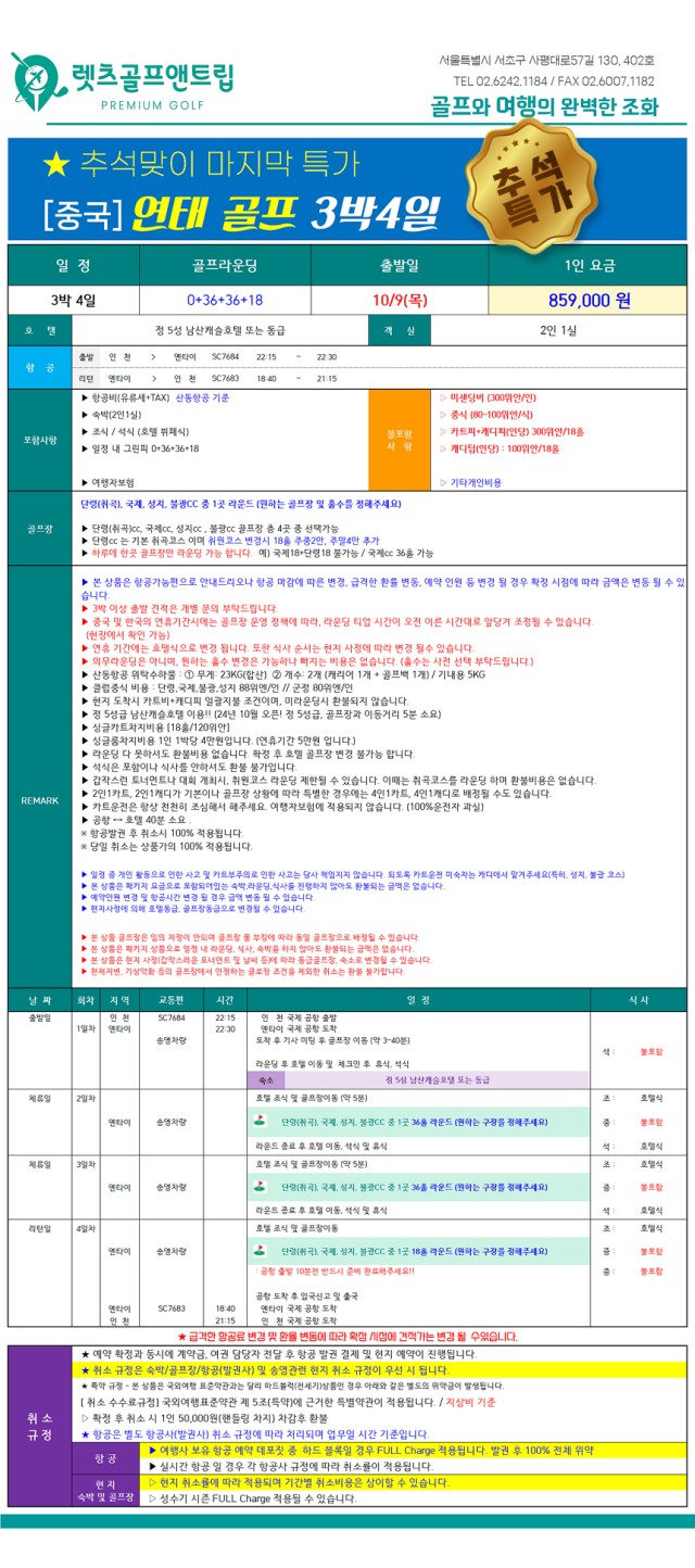 🎁 한가위 골프여행, 지금이 기회! 초.특.가로 연태골프 떠나보아요!
