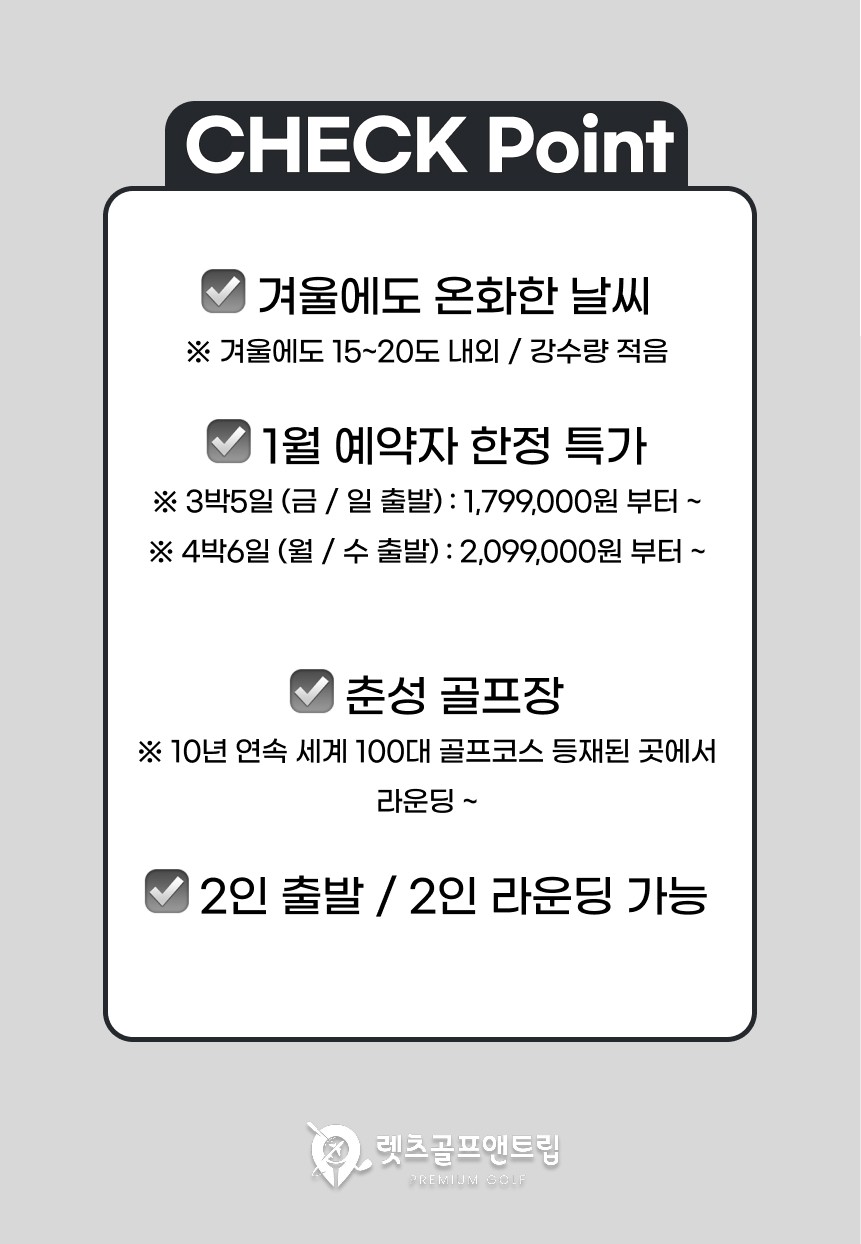 한국의 겨울을 벗어나, 가장 완벽한 라운드 시즌을 만나보세요! ⛳️