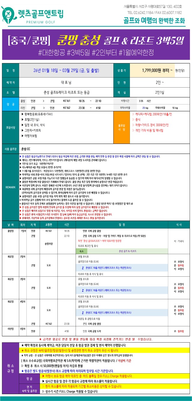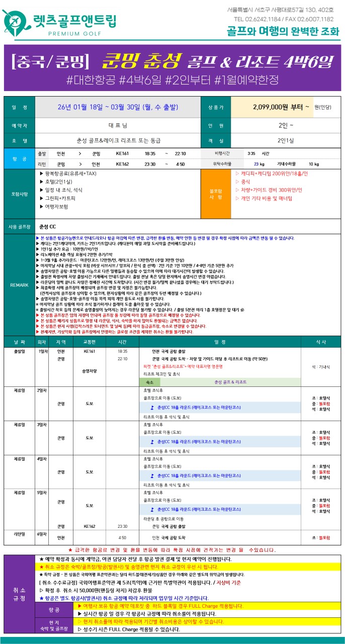1/18 ~ 3/30 | 쿤밍 춘성 골프