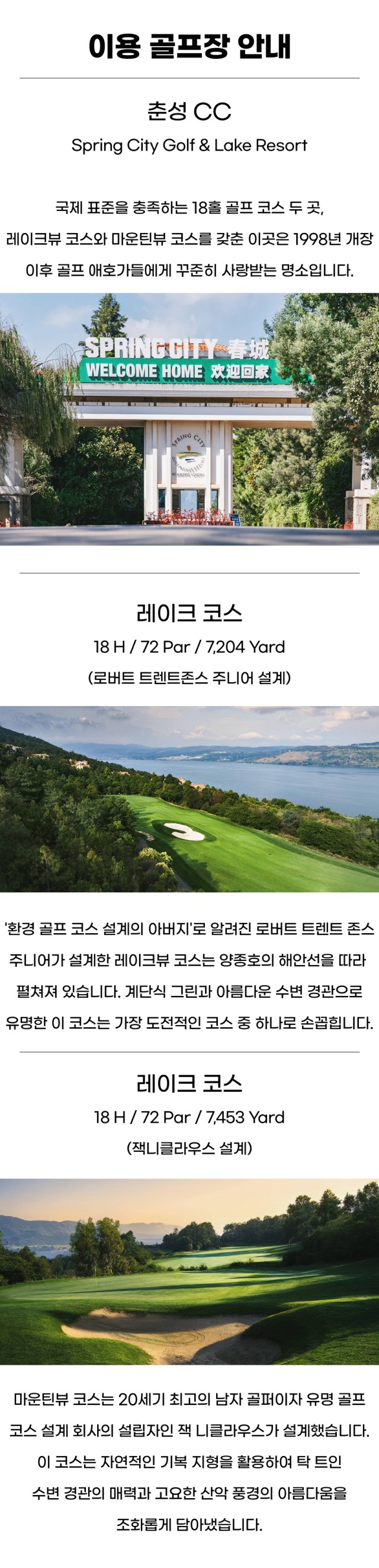 코스 : 18홀 / Par 72 / 7,204 Yard ㅣ 설계 : 로버트 트렌트존스 주니어