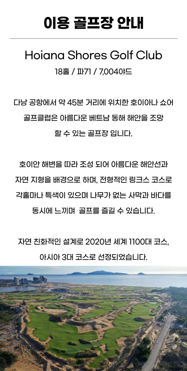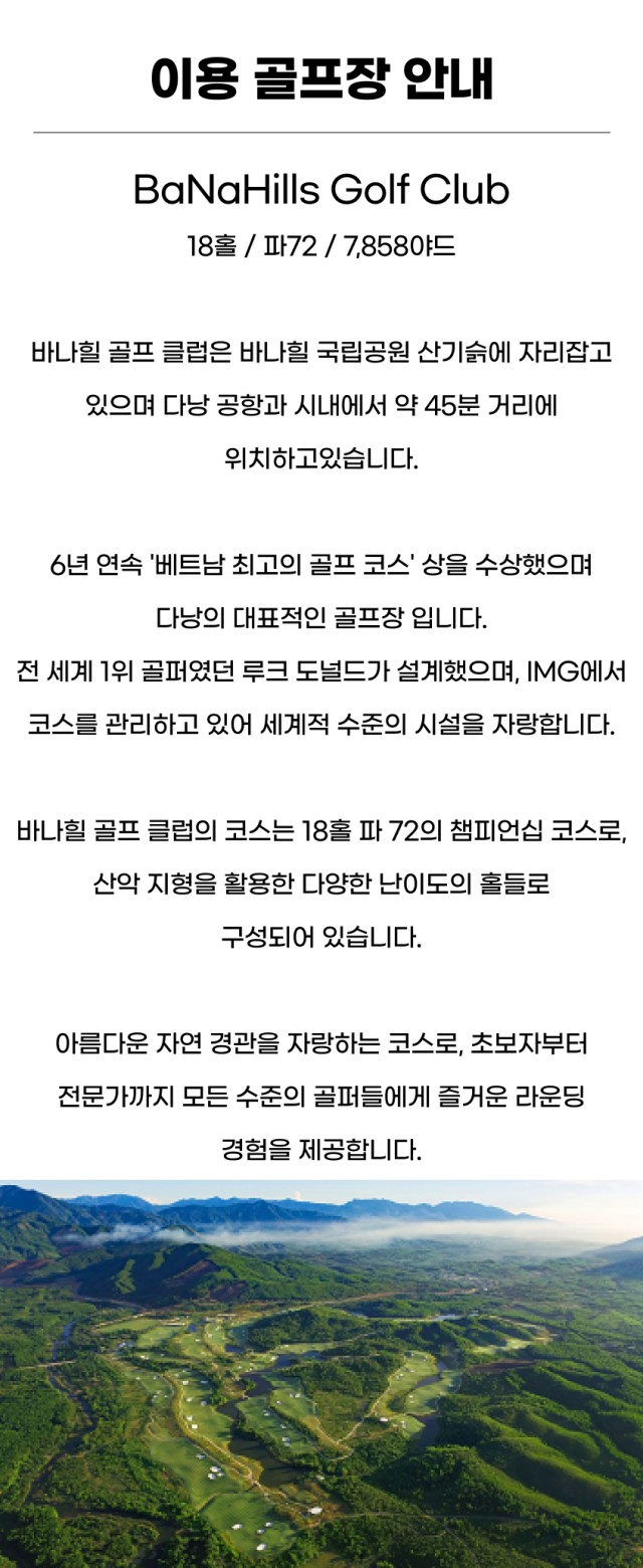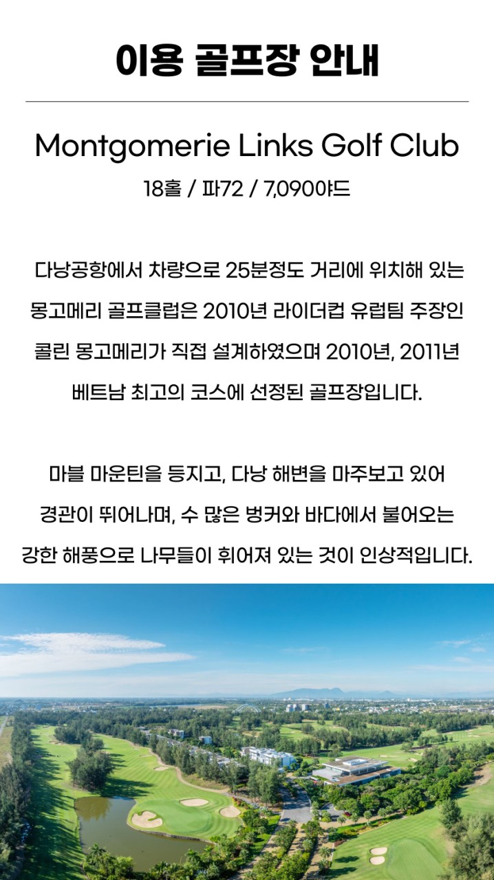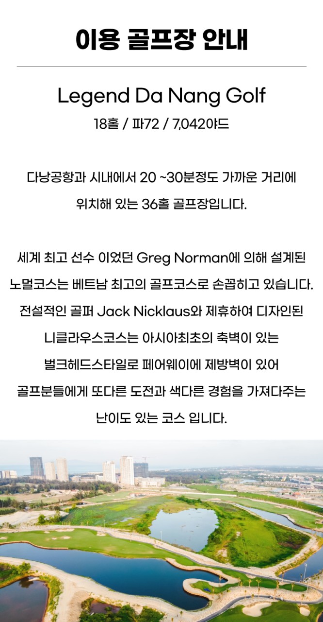 ★Legend Da Nang, Ba Na Hills, Hoiana Shores Golf CC, Montgomerie Links, Vinpearl NamHoiAn 중 3곳 라운딩(예약상황에 따라 랜덤배정)