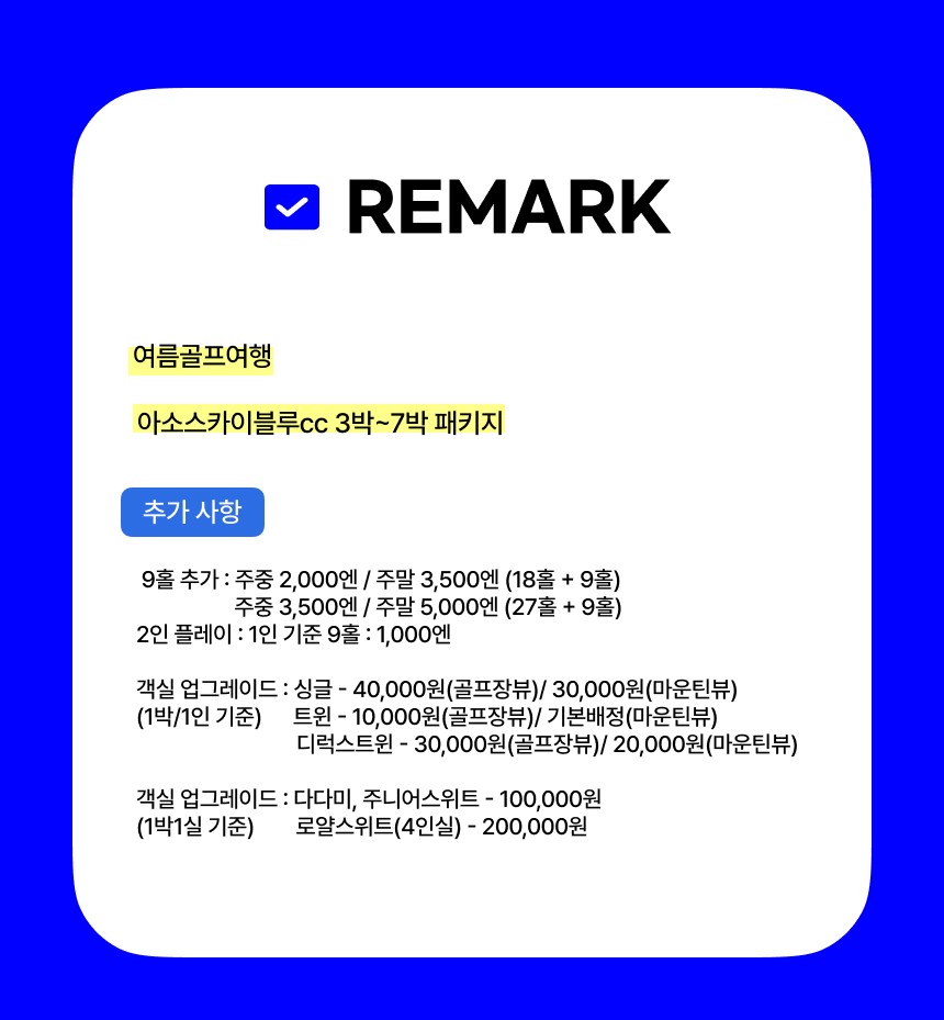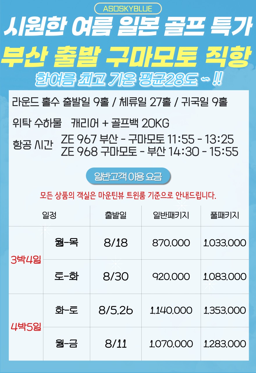 🏨호텔: 아소스카이블루 리조트(2인1실)
