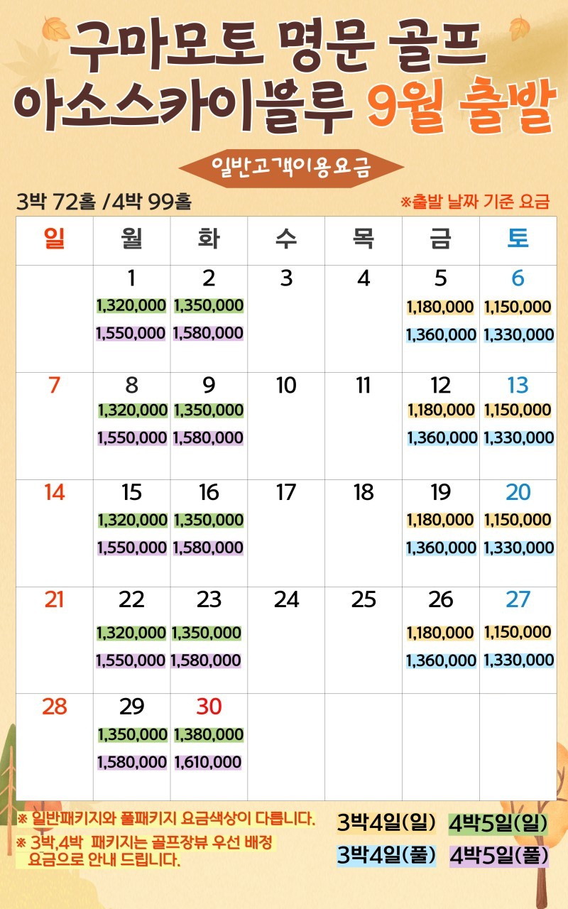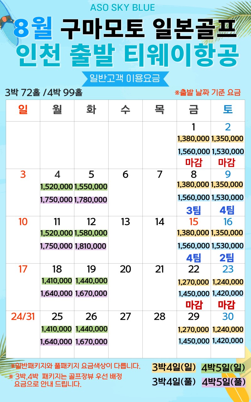 ⛳️8월 ~ 10월 ⛳️특가일 업데이트
