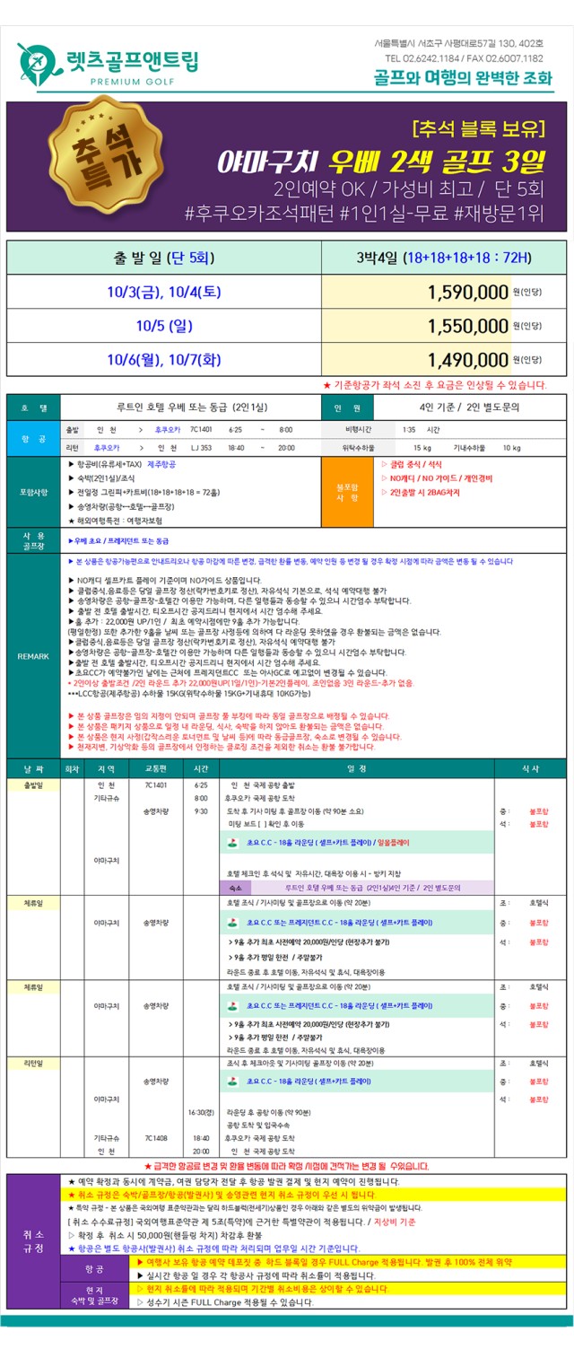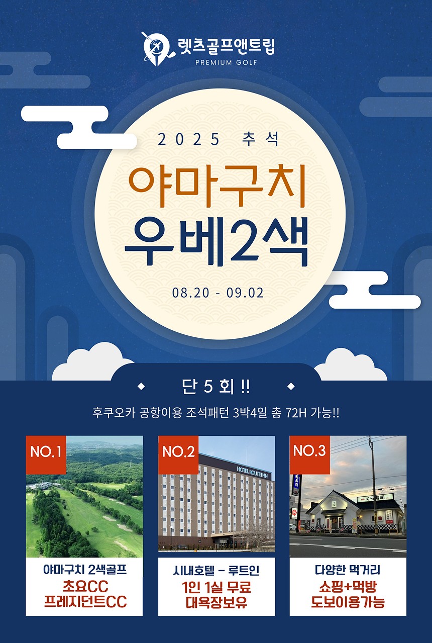 일본/우베 초요, 프레지던트cc 야마구치 2색 10월 추석 연휴 3박4일패키지