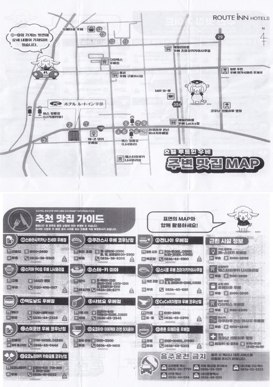 항공료, 루트인 호텔 우베, 조식, 대욕장,