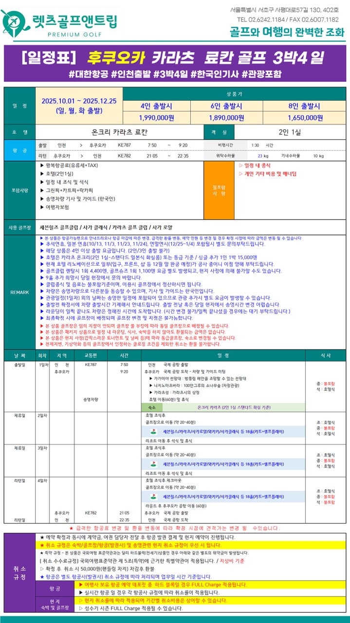 Korean Air ✈️✈️✈️ 후쿠오카 카라츠 료칸 골프 4일
