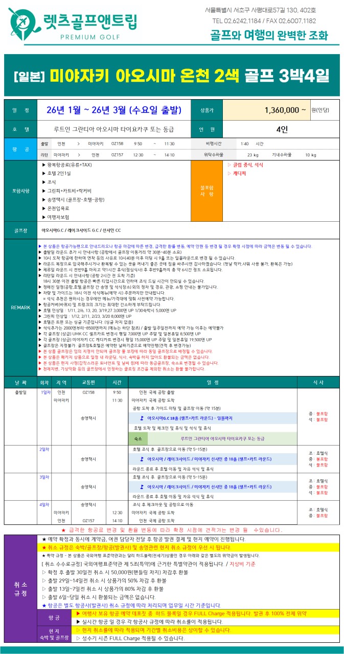 ⛳미야자키 아오시마 온천 2색 골프 4일⛳