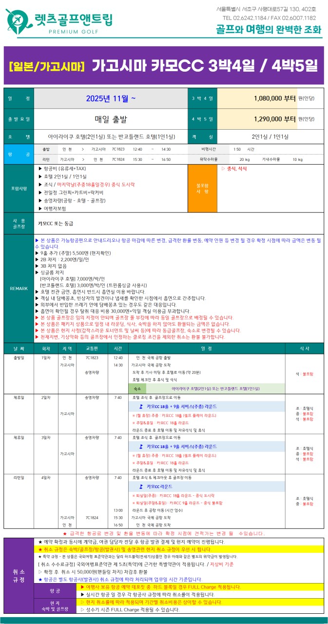⛳️가고시마 카모 골프 & 시내 호텔 💕<3박/4박>