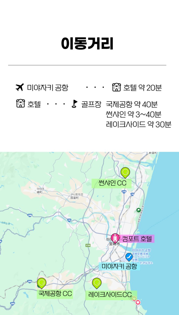 <미야자키 시내 컴포트호텔 숙박!! 3색 골프장 라운드!! >