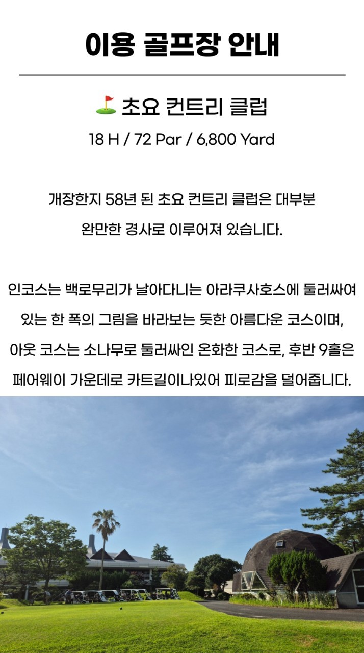 - 클럽중식 추가분,음료 등은 당일 골프장 정산(락카번호키로 정산), 자유석식 예약대행 불가