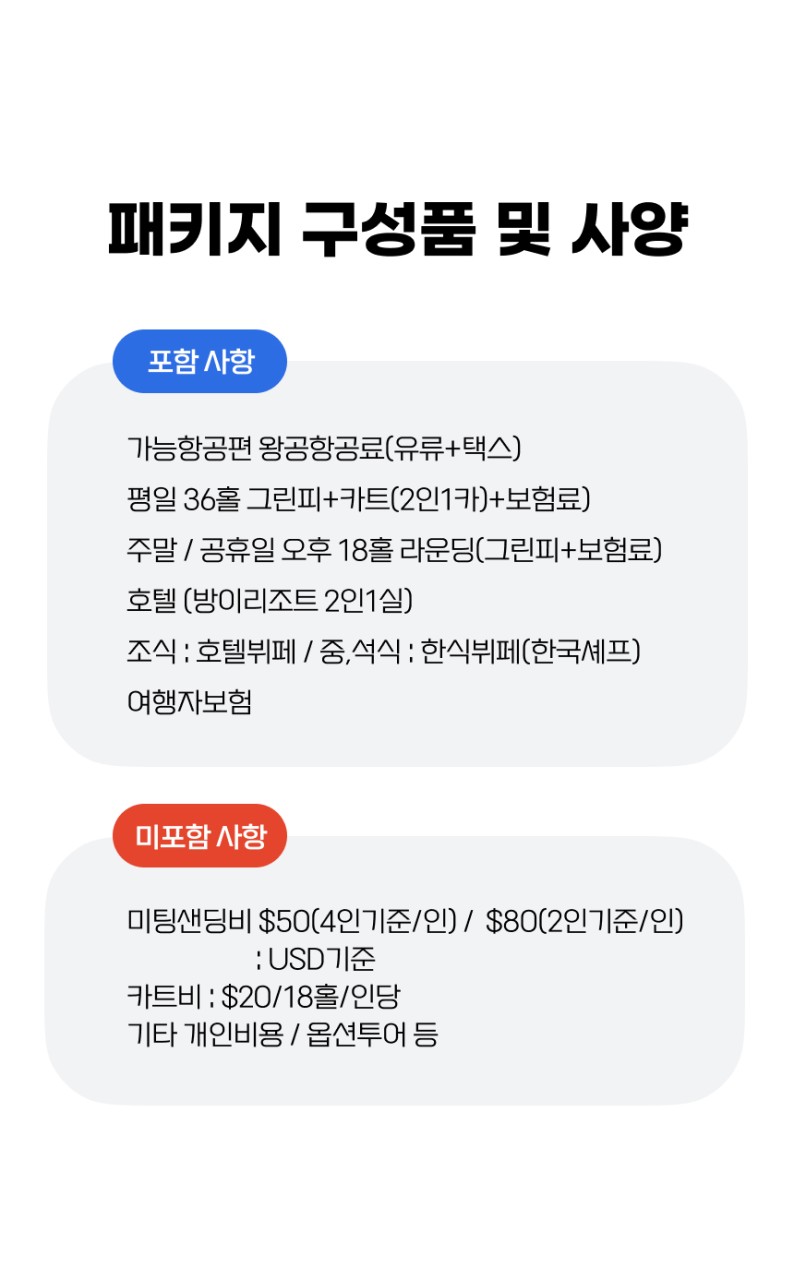* 주말·공휴일 오전 티오프 변경 시: USD 30 추가