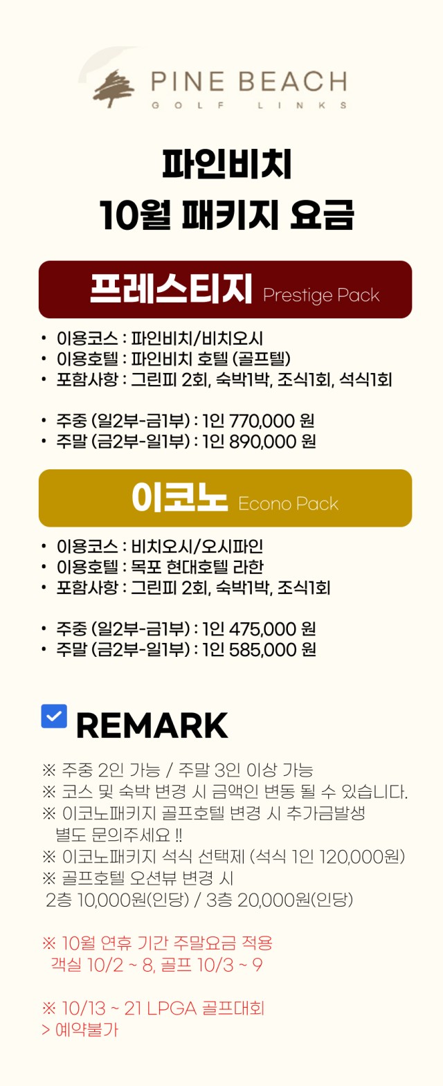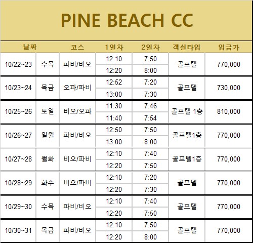 전라/해남 파인비치cc LPGA대회 코스 10월 1박2일패키지