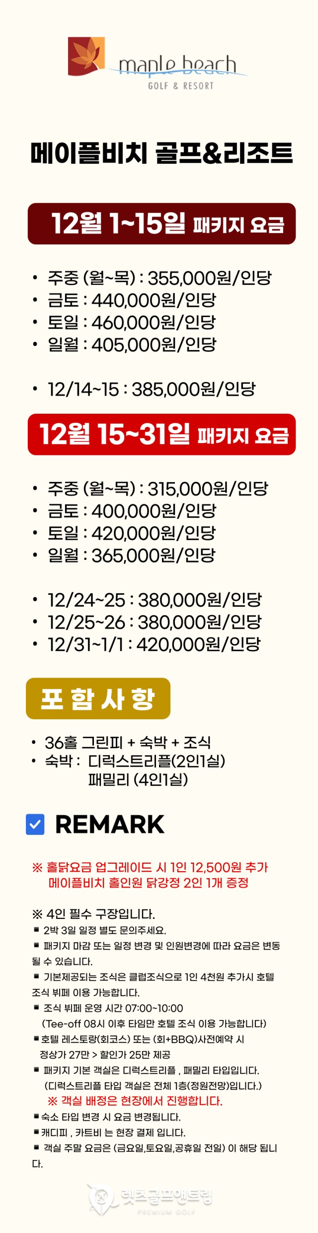 ⚜메이플비치 숙박 : 디럭스트리플 (2인1실) / 패밀리 (4인1실)