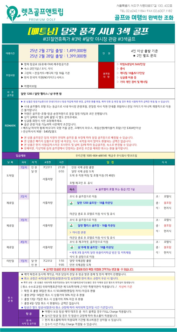 베트남골프 달랏 품격 시내3색 골프여행 해외패키지