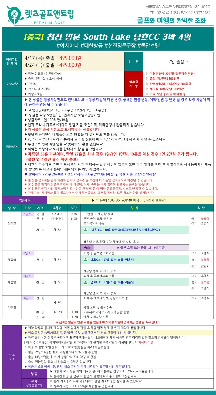 1️⃣LCC 저가항공이 아닌 아시아나 또는 대한항공 타고 가는 천진 SOUTH LAKE 골프클럽