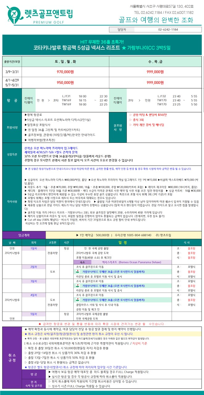 🌅 세계 3대 선셋 코타키나발루에서 골프와 휴양을 함께!