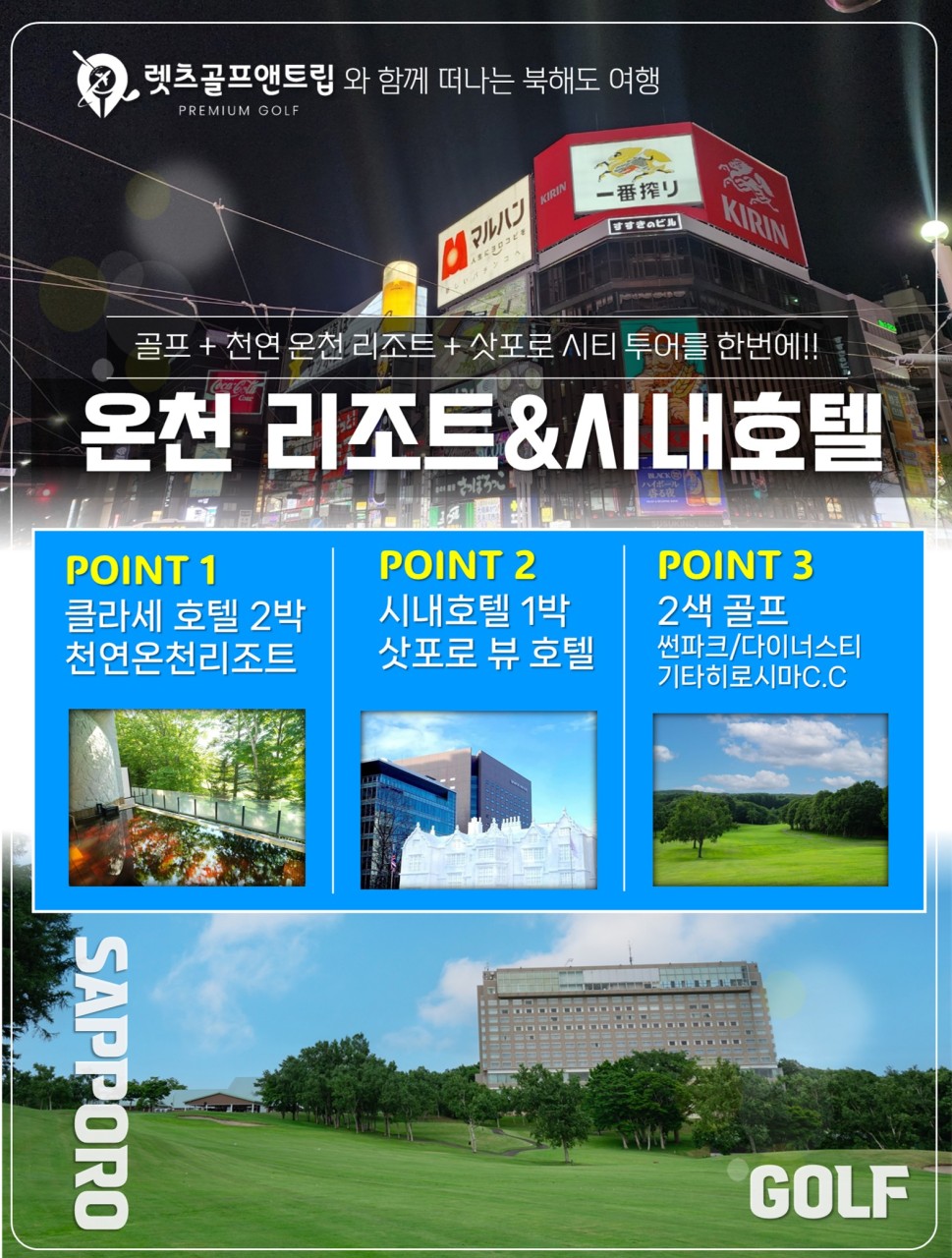🔰온천리조트2박 + 시내호텔1박으로 알찬 삿포로 여행!