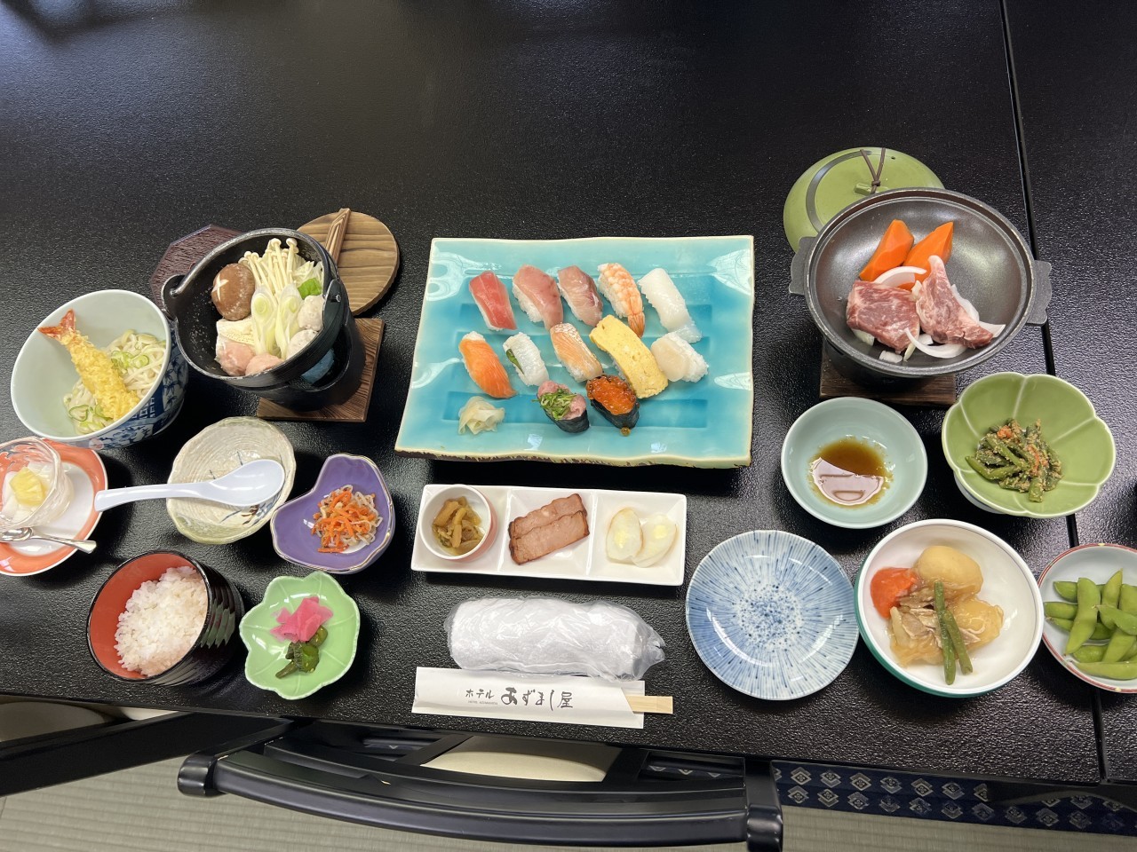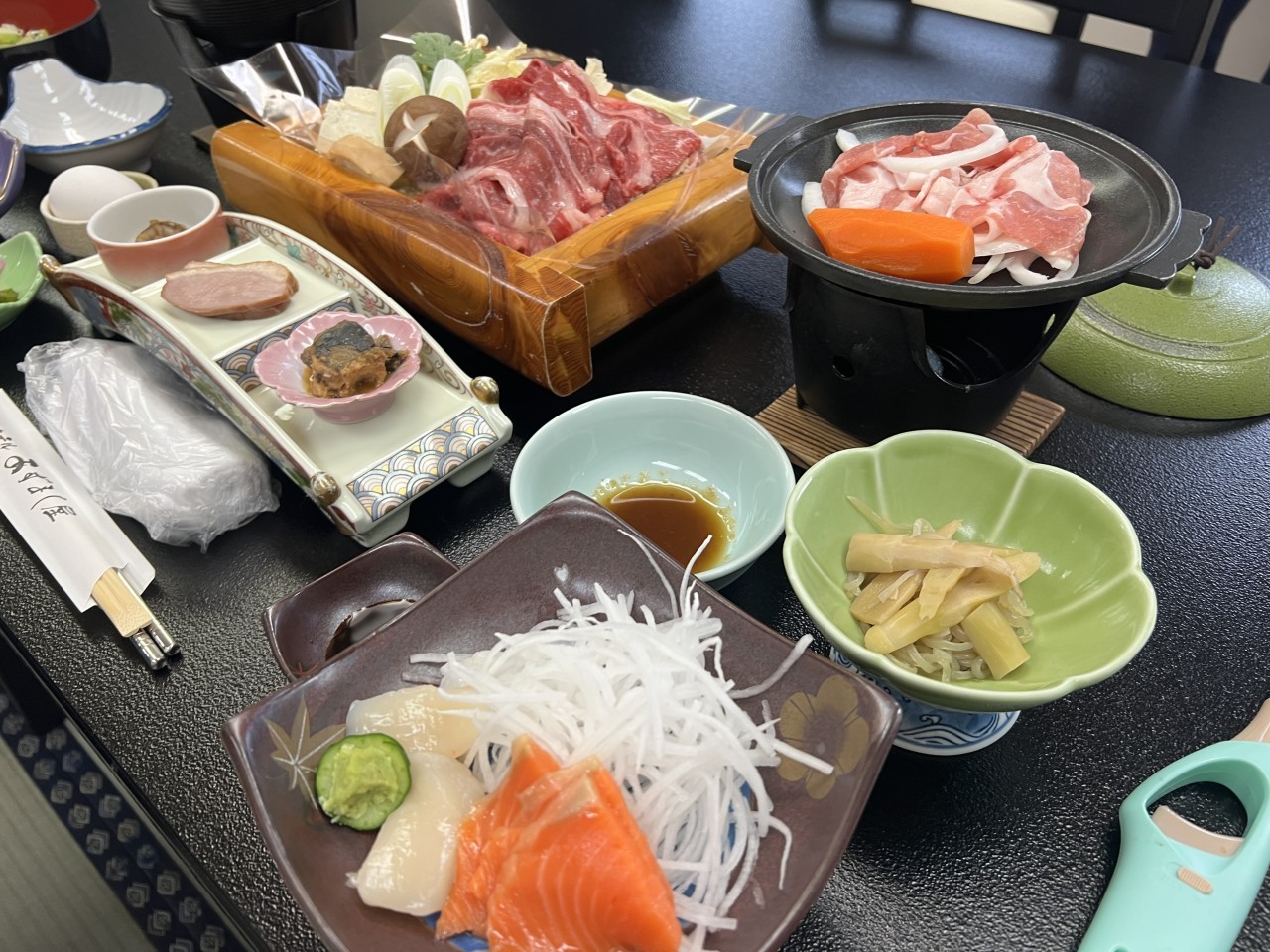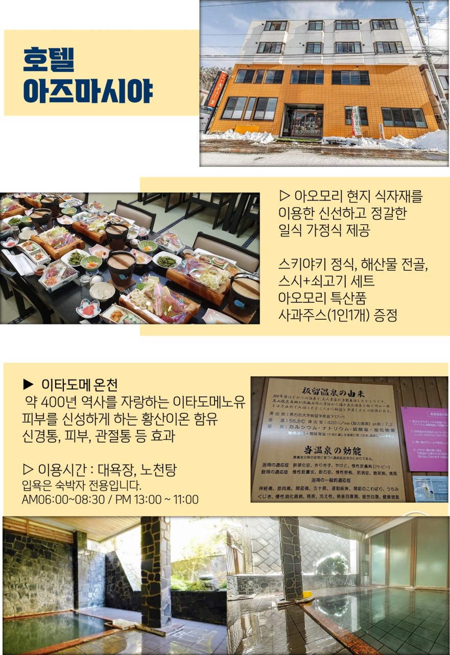 -식사는 정성스럽고 정갈하게 준비한 가정식 일식요리로, 재료 또한 아오모리현산의 질 좋고 신선한 재료를 사용하여 자랑할만한 식사를 제공
