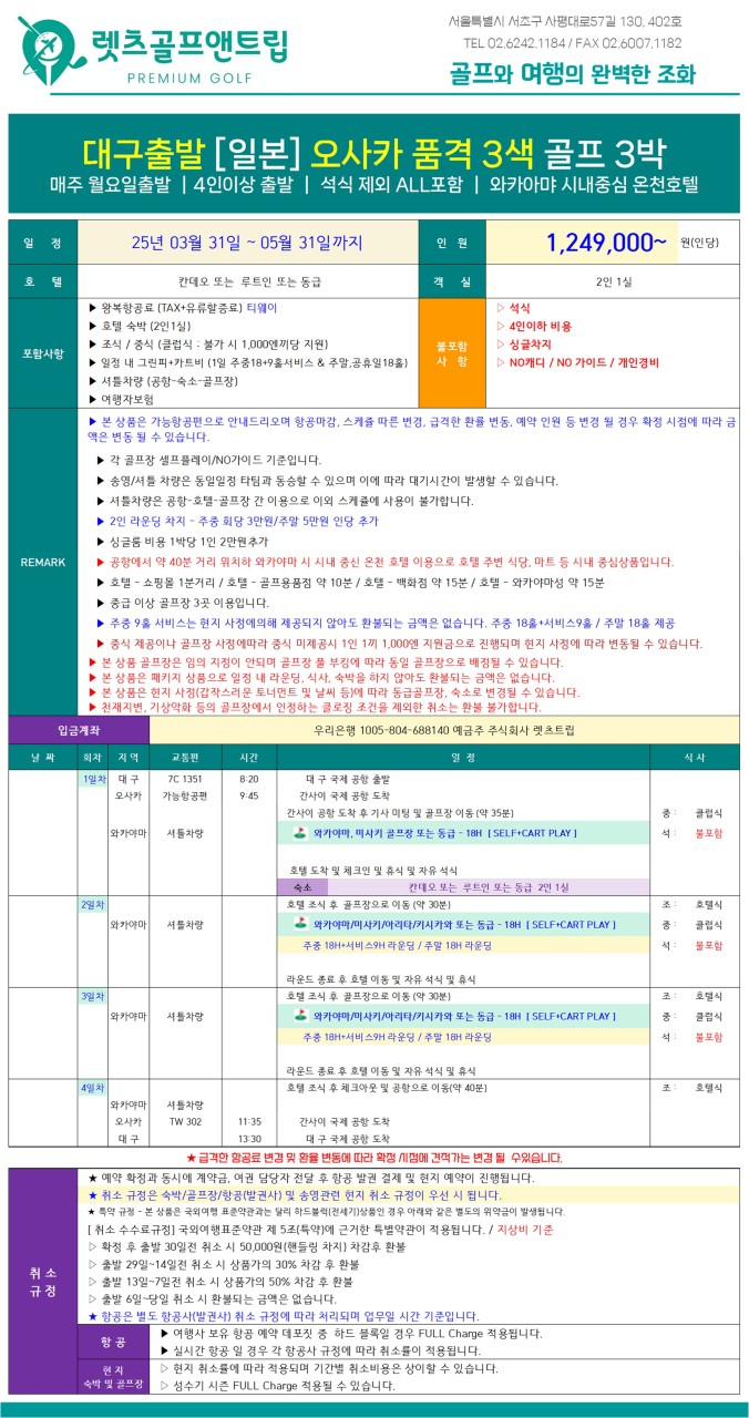 🗓출발일 및 요금 : 3월31일~5월31일