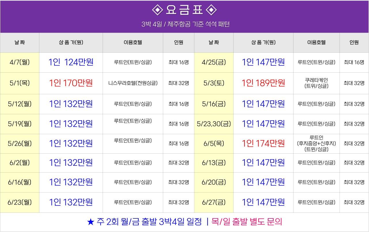 ✔4~6월 월 출발124만~ 금출발147만~