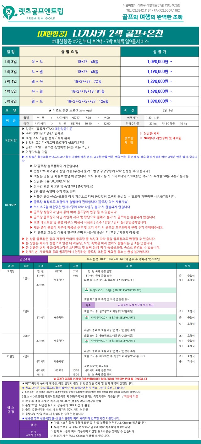✈️신상품 나가사키 고품격 2색 골프 올포함!!✈️
