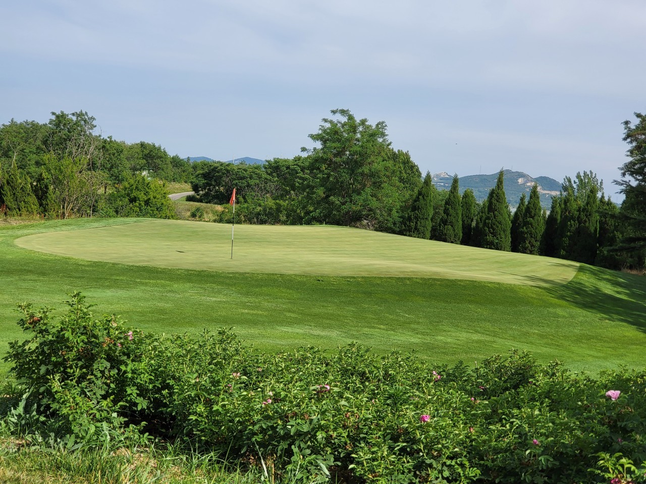 군정cc 는 18홀 골프장으로 호수 건너편에 자리잡고 있는 포도조주장이 광활한 골프장과 마주 하고 있어 골퍼들로 하여금 산의 웅장함과 호수의 아름다움 꽃의 화려함을 볼수 있습니다.