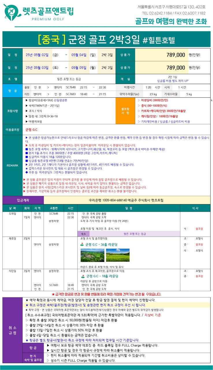 📆 5월 황금연휴 출발 2박3일 (0+36+18)