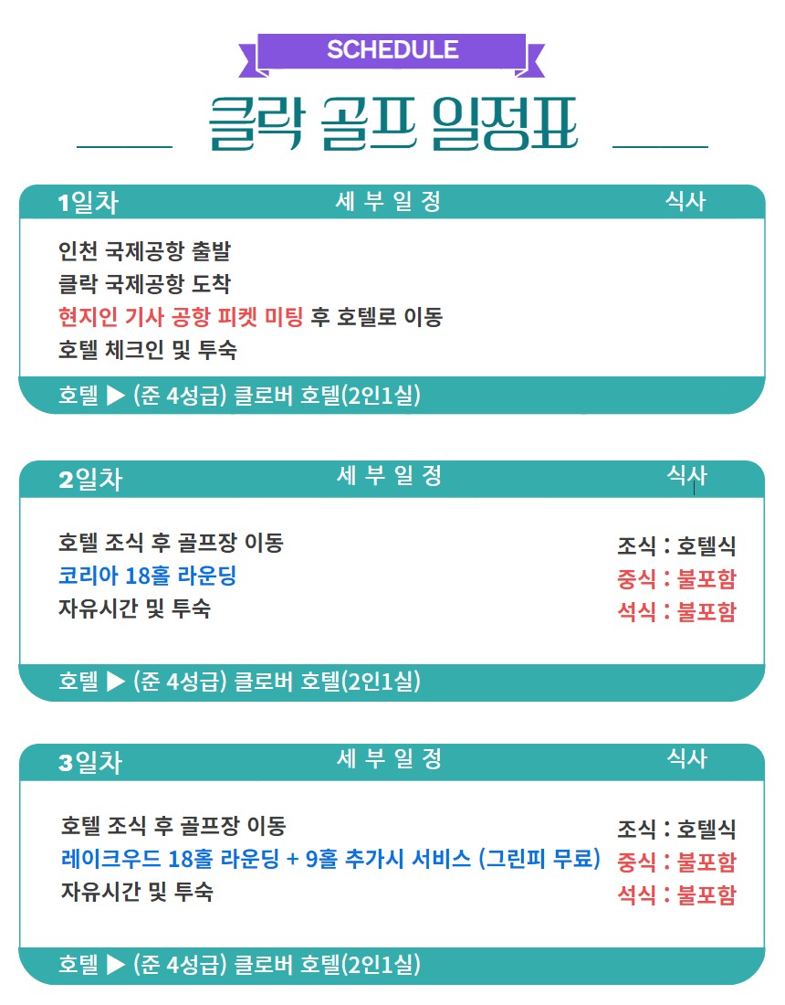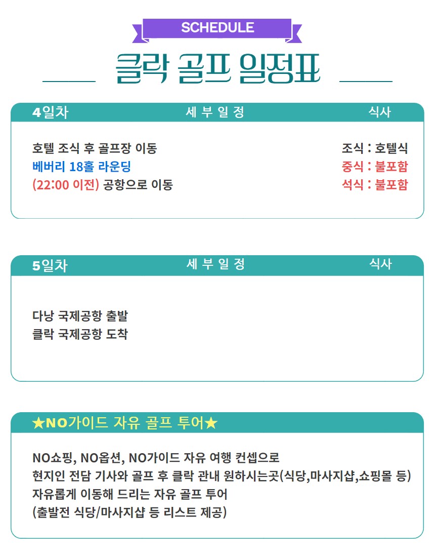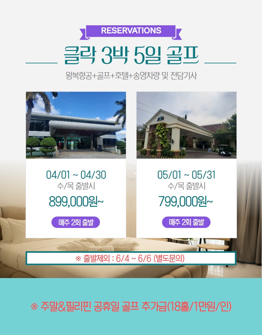 필리핀골프 클락 4-7월 3색 자유골프여행 해외패키지