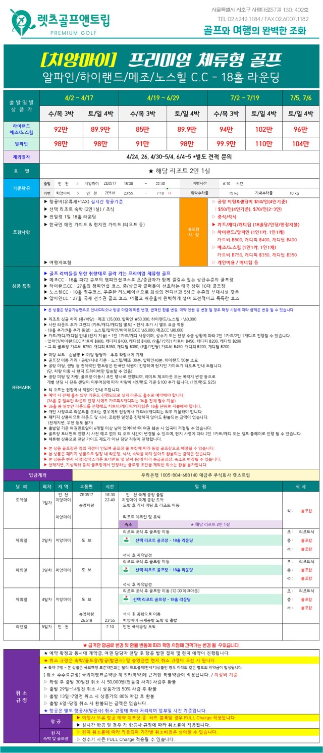 📆 출발기간 : 4/2 ~ 7/17까지