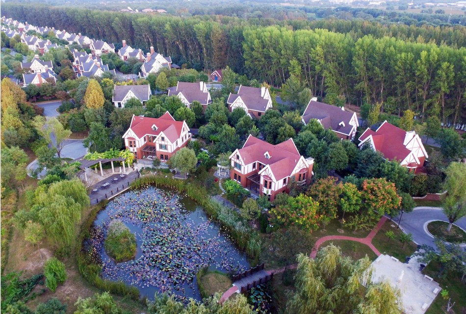 "녹색과 생태학적"이라는 건축 개념으로 Meilu Manor Villa는 영국 스타일의 디자인을 채택하고 전체적인 스타일은 Baiyangdian Lake의 아름다운 풍경을 보완합니다.