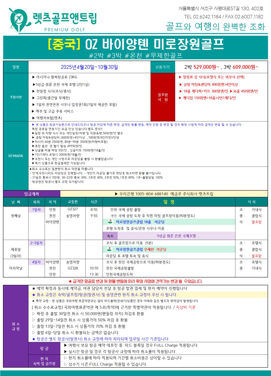 🌸천년도시 바이양뎬 무제한골프 3박4일🌸