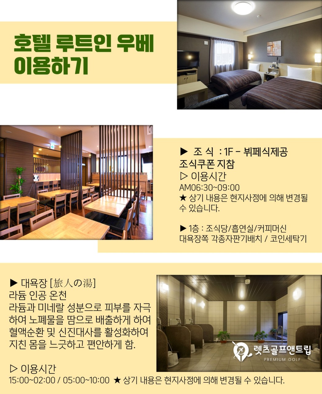 📍호텔 주변 식당, 쇼핑몰, 골프 등 도보 이동, 대욕장 포함!