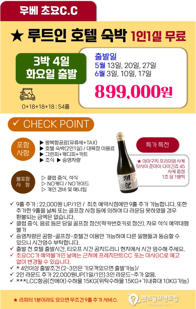 [재방문 1위 화요일 출발 특가 ] 야마구치 우베 초요CC 골프 (2인 OK)