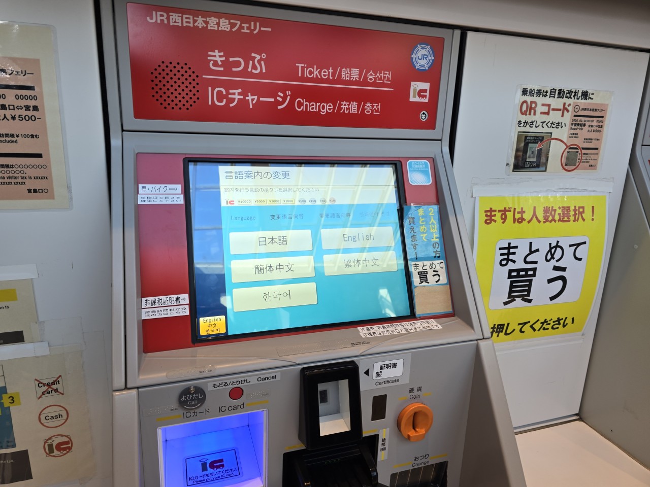 호텔 도보 3분 거리 사이조역에서 미야지마섬까지 가는 직행이 있어요~ 전철표를 끊는 자판기도 한국어로 되어 있어 쉽게 발권 할 수 있어요~
