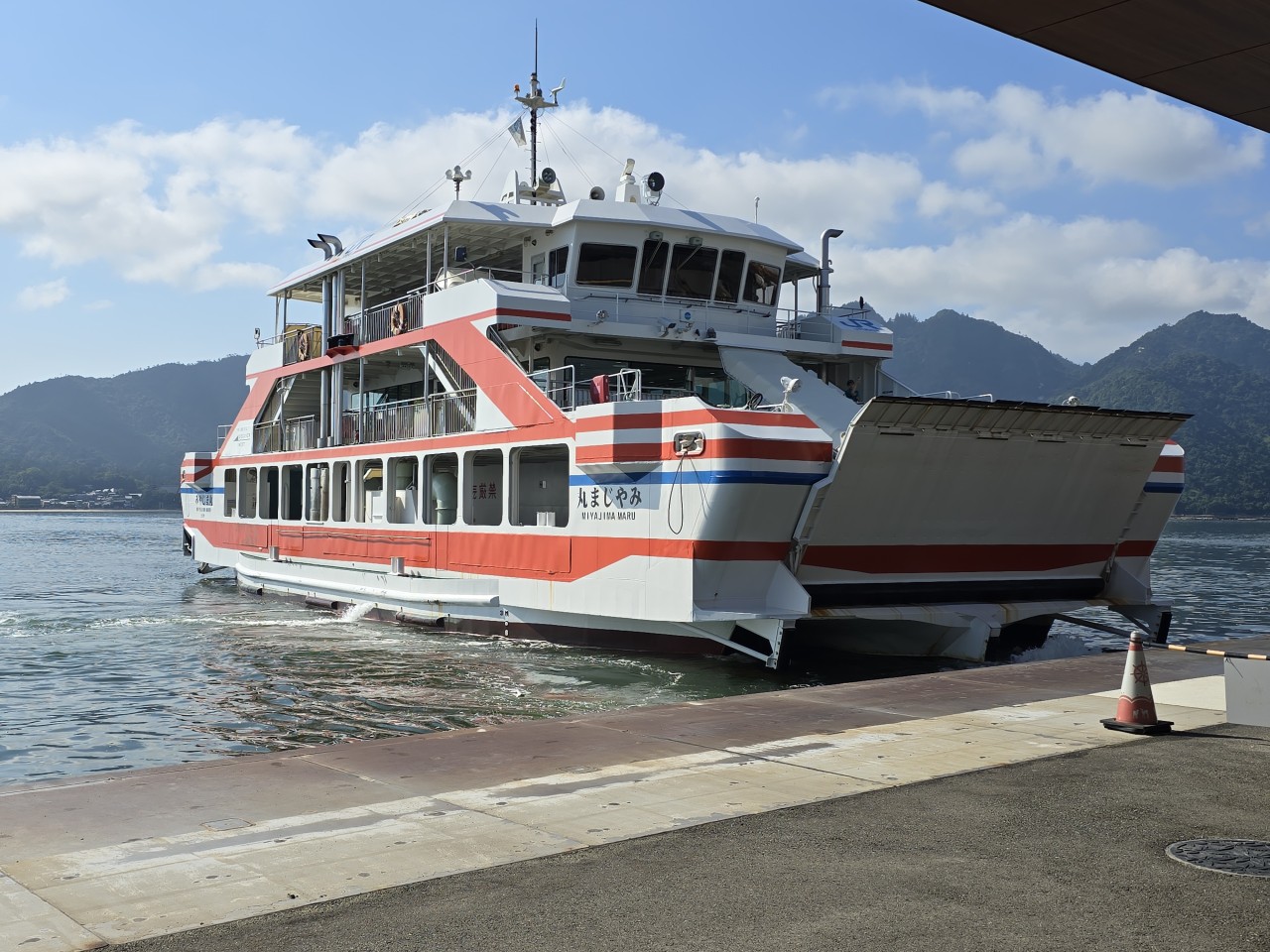 전철 타고 1시간 10분 정도 이동을 하는데 전철에 사람이 많이 없어서 편안하게 이동을 합니다. 미야지마섬에서 내려서 배를 타고 10분 정도 이동하면 섬에 들어갈 수 있어요~