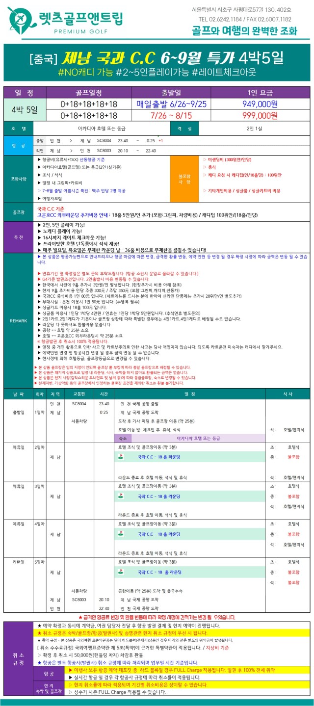 💥노캐디 플레이로 즐기는 제남 국과CC 7~9월 특가!