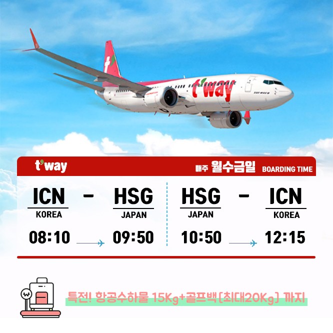 TW왕복항공+TAX(수하물 15KG, 골프백(최대 20KG)까지