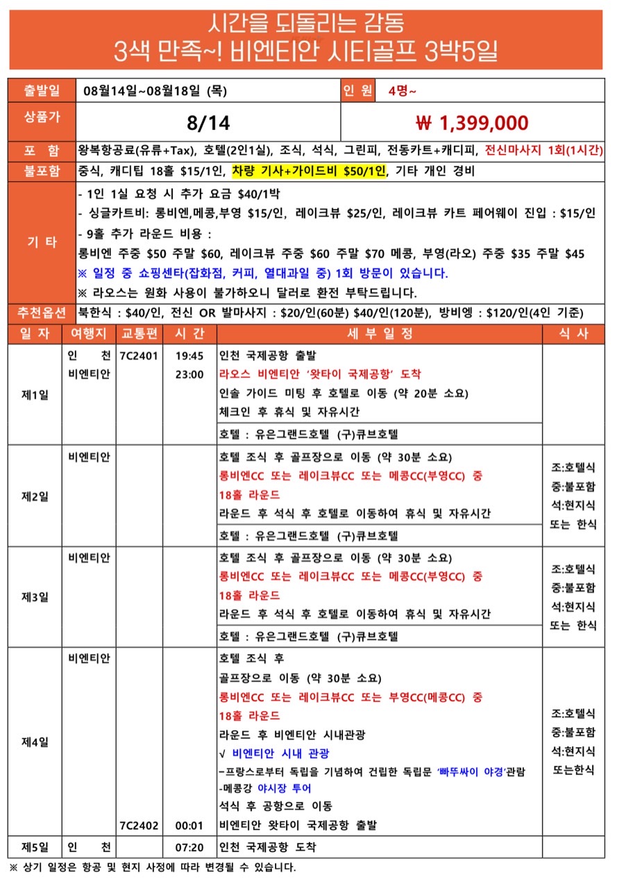 ⛳ 레이크뷰CC, 롱비엔CC,메콩CC 또는 라오CC