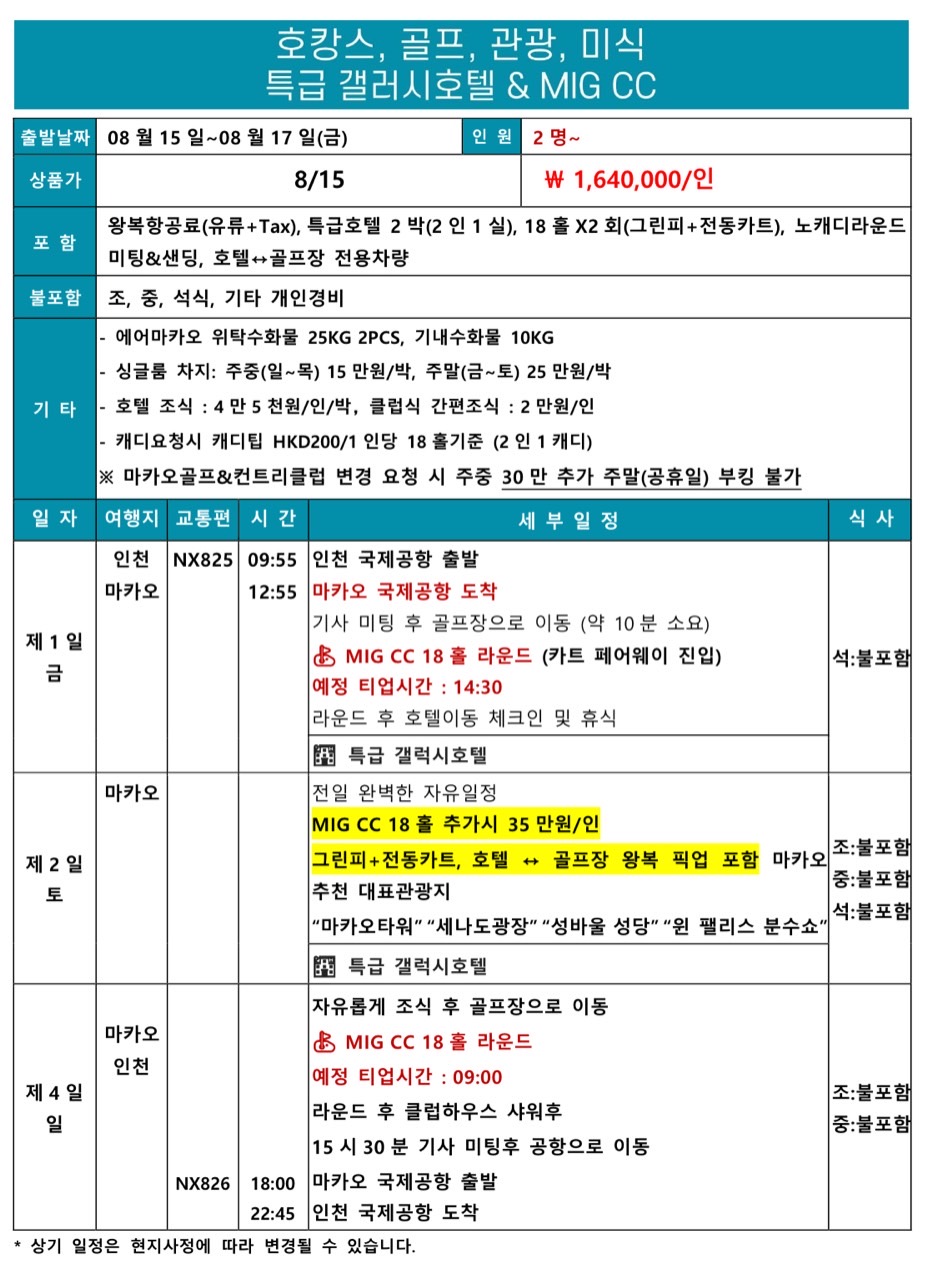 📍 마카오 럭셔리 골프 2박3일