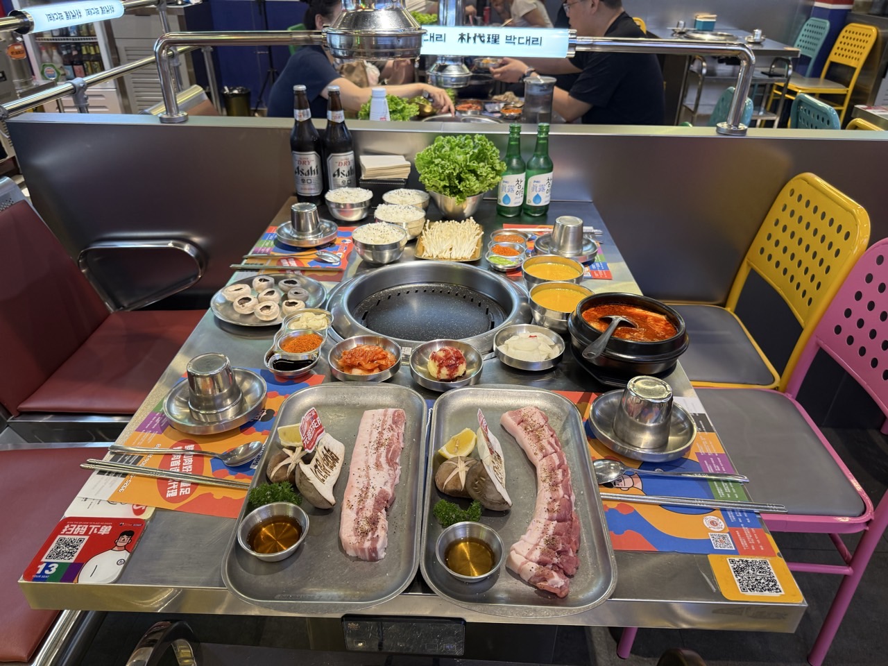 현지식을 못 드시는 분들은 한식으로 드실 수 있습니다. 호텔에서 차량으로 약 20분 정도 이동하며 시내에 있는 식당에서 삼겹살과 찌개 한상 차림으로 드실 수 있습니다.