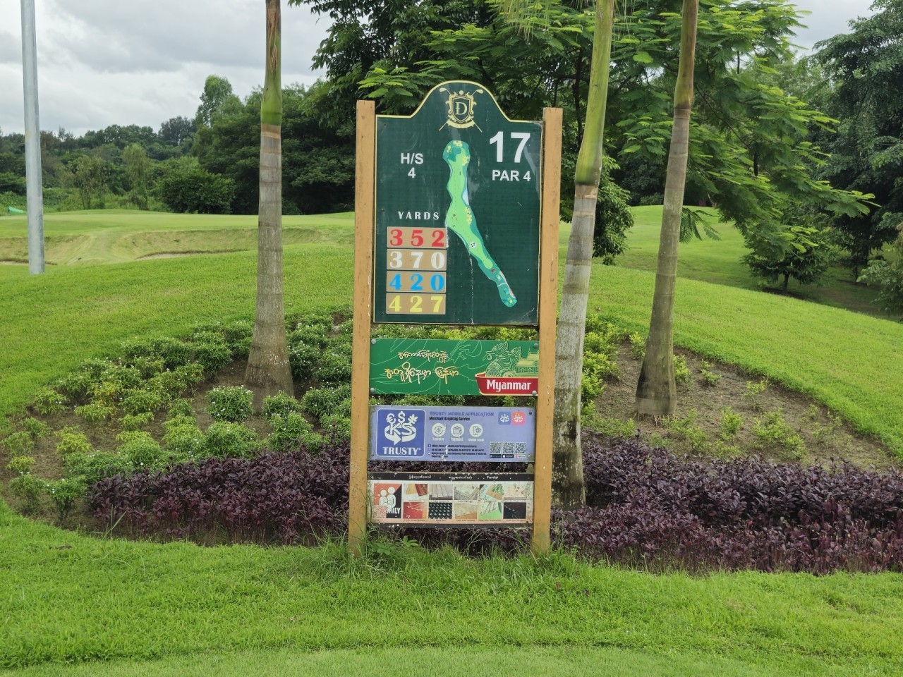 미얀마에서 인기 골프장으로. 양잔디로 코스가 좁고.모든 샷이 정확도가 떨어지면 다음샷 또한 힘들어지고. 생각이 많아 지는 코스로, 그린주변에는 벙커가 포진하여. 그린 공약도 어려워 지는 코스