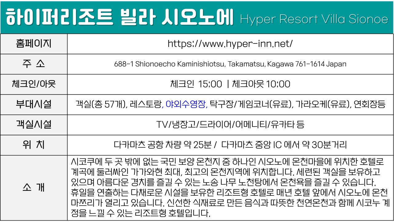 ✅️하이퍼 시내+온천 상품(시내 2박 + 온천 1박)